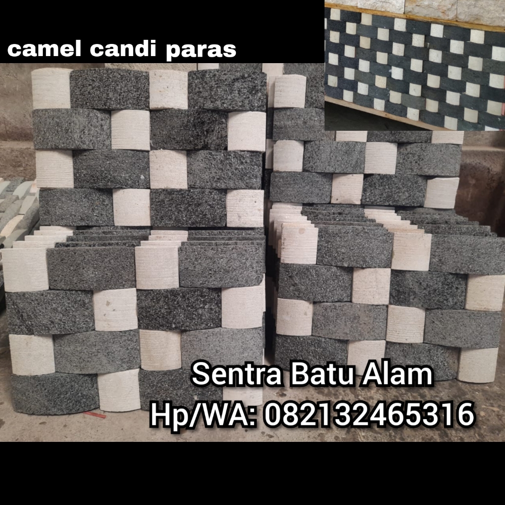 Camel anyam andesit kombinasi paras//sentra batu alam tulungagung Camel anyam andesit kombinasi paras merupakan produk terbaru dari sentra batu alam kami dengan perpaduan batu andesit yang dikombinaikan dengan batu paras .tidak henti-hentinya pabrik kami membuat inovasi terbaru kerajinan dari batu alam.camel ini memiliki motif seperti anyaman membuat camel ini banyak digemari dan diminati oleh kalangan …